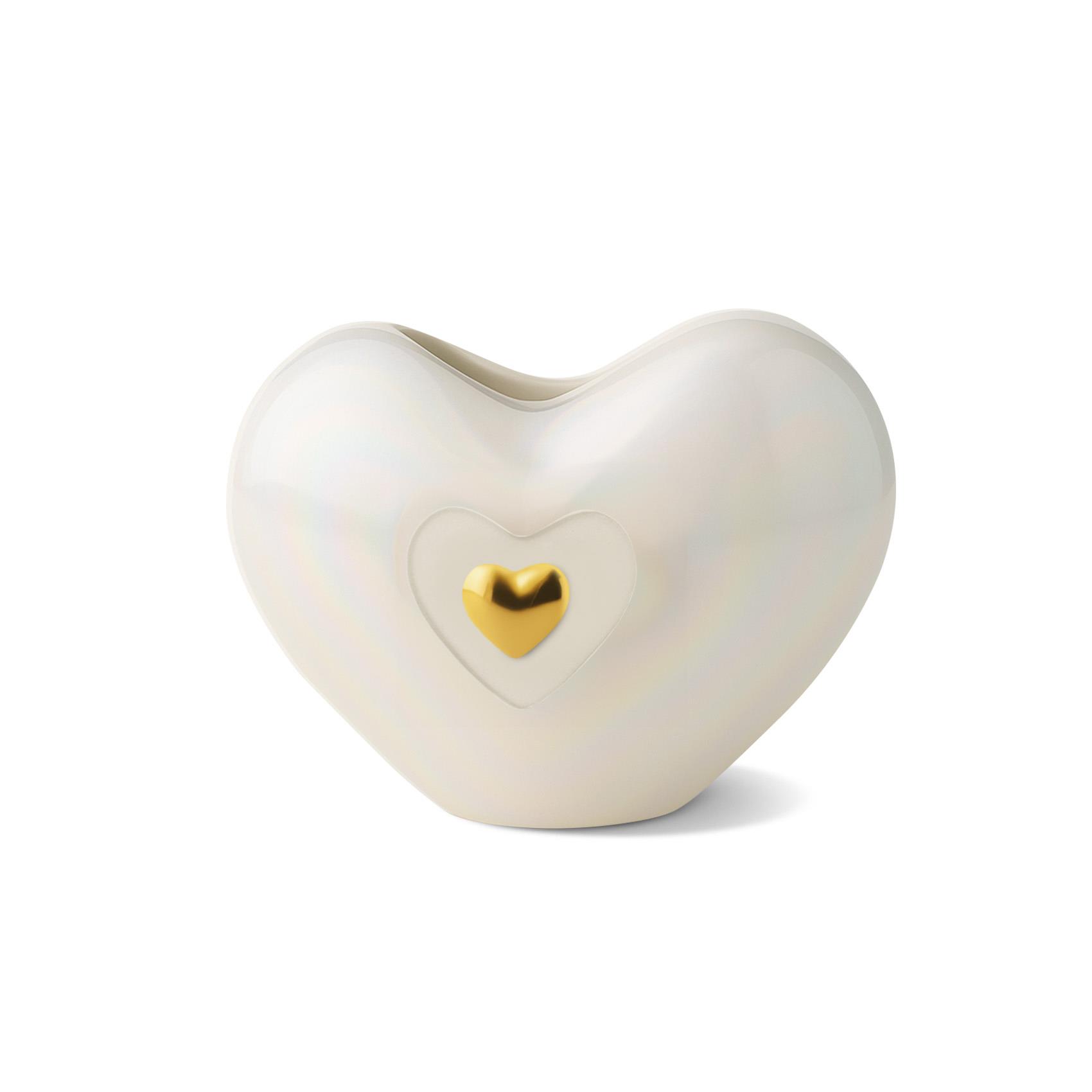 Vazonun iç yüzeyi parlak, dış yüzeyi ise tek renk lüsterli kaplamadır. %100 el yapımı ince porselenden üretilmiştir. İki yanında yer alan altın kaplama kalplerle süslenmiş bu zarif vazo, evinizi dekore ederken stil ve şıklık katmak isteyenler için ideal bir seçenek sunmakta.